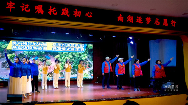 現(xiàn)場(chǎng)藝術(shù)節(jié)目精彩紛呈。情景劇《南湖暖陽(yáng)》再現(xiàn)鄰里互助溫情,情景劇《華錦“民”星,微光閃亮》展現(xiàn)社區(qū)“民星”熱心服務(wù),詩(shī)朗誦《以志愿之名書(shū)青春華章》寓意志愿服務(wù)遍地開(kāi)花。這些節(jié)目讓感動(dòng)在藝術(shù)共鳴中升華。