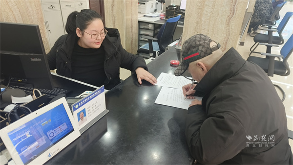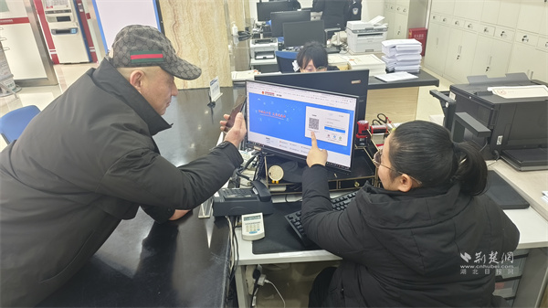 工作人員指導(dǎo)張先生在線辦理業(yè)務(wù)。 通訊員供圖