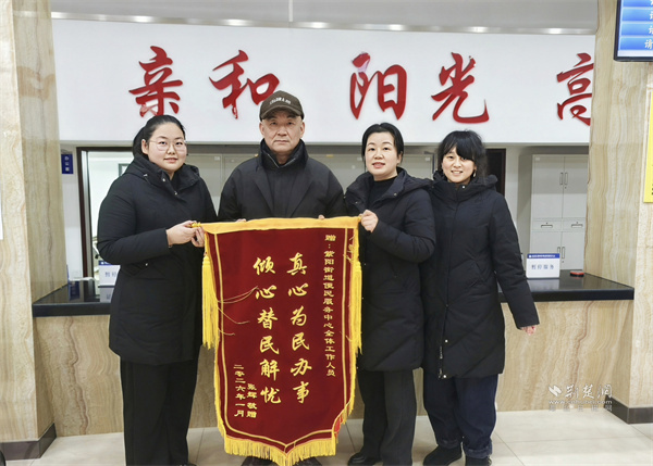 張先生向紫陽(yáng)街道便民服務(wù)中心工作人員送上錦旗。 通訊員供圖