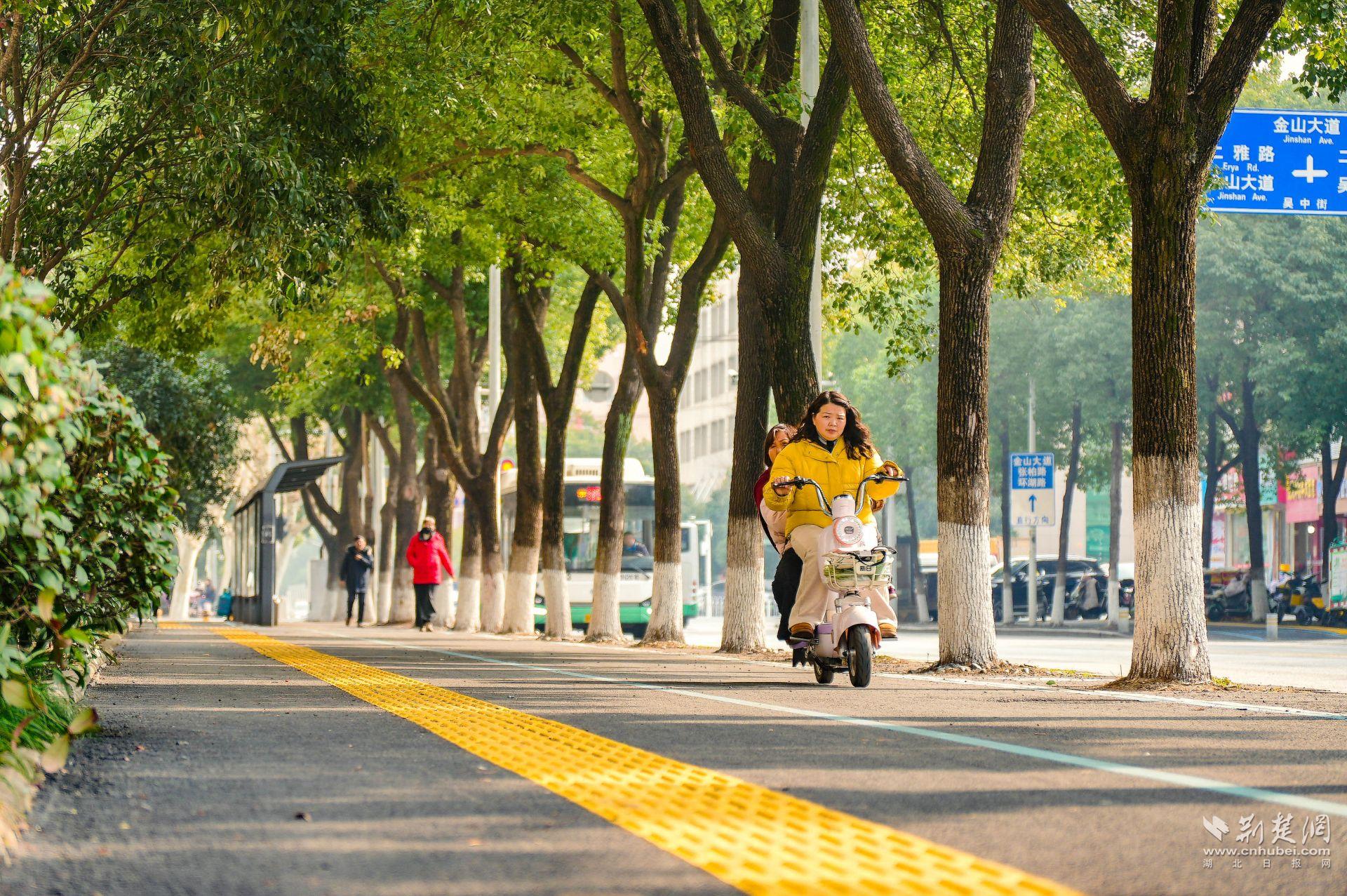 另一個明顯變化是,人行道旁多出了一條清晰的非機動車道。過去,吳中街沒有專門的非機動車道,人車混行存在隱患?,F(xiàn)在,“人非共面”的模式讓騎行與步行各自有序,盲道也同步更新,安全系數(shù)大幅提升。