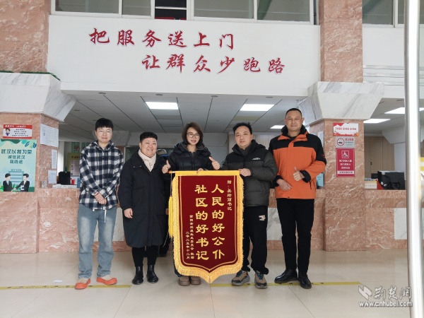 紫陽金利屋小區(qū)業(yè)委會代表居民為社區(qū)送錦旗致謝。 通訊員供圖