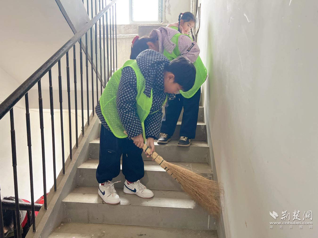 活動中青少年們化身“環(huán)保小衛(wèi)士”進入樓棟開展衛(wèi)生打掃。通訊員供圖