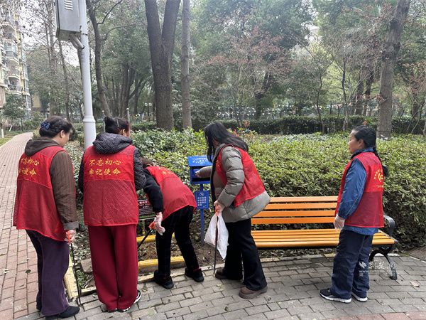 活動現(xiàn)場,全體人員齊聲合唱《學(xué)習(xí)雷鋒好榜樣》,激昂旋律點燃奉獻熱情。志愿者們分工協(xié)作、有序行動,一組擦拭樹木認養(yǎng)牌、更換嶄新標(biāo)簽,為樹木明確“身份標(biāo)識”,增添護綠責(zé)任;另一組擦拭公共休閑椅、科普設(shè)施及兒童游樂設(shè)施,讓公共空間潔凈如新。