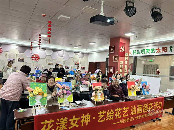 活動(dòng)現(xiàn)場(chǎng),長(zhǎng)桌上整齊擺放著畫(huà)布、油彩、花材等材料。啟晨便民服務(wù)中心專業(yè)老師細(xì)致講解油畫(huà)色彩搭配、筆觸運(yùn)用技巧,手把手指導(dǎo)花材修剪、造型搭配要領(lǐng),耐心解答大家的創(chuàng)作疑問(wèn)。居民們興致盎然,或蘸取油彩在畫(huà)布上揮灑創(chuàng)意,暈染出五彩斑斕的專屬畫(huà)作;或?qū)W⑿藜艋ㄖ?、搭配層次,一束束生機(jī)盎然的花藝作品接連成型,鄰里間相互交流心得、分享技巧,現(xiàn)場(chǎng)笑語(yǔ)不斷。