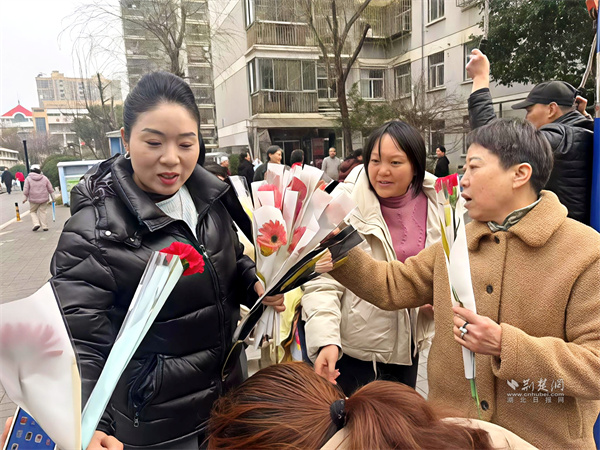 為轄區(qū)女性送上鮮花與祝福。 通訊員供圖