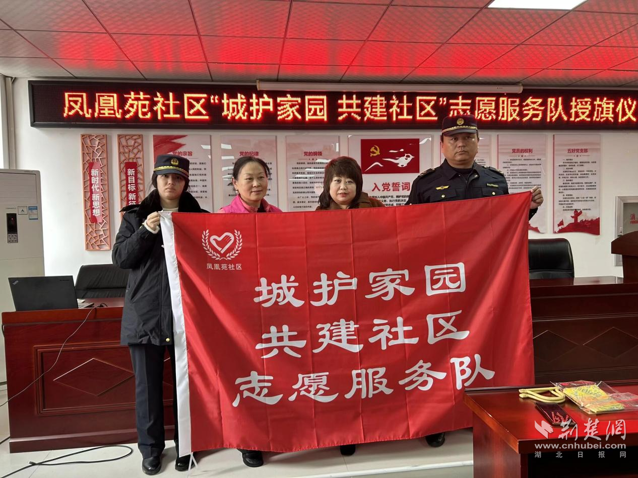 現(xiàn)場為“城護家園 共建社區(qū)”志愿服務隊授旗。通訊員供圖