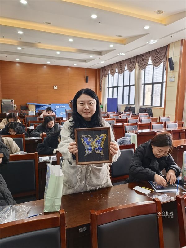 螺鈿手工擺件制作環(huán)節(jié),專業(yè)老師講解了螺鈿工藝的千年歷史與制作技巧,演示了底座處理、螺鈿粘貼、細(xì)節(jié)修飾全流程。女職工們領(lǐng)取專屬物料包,發(fā)揮創(chuàng)意搭配色彩、設(shè)計造型,工作人員全程提供協(xié)助。創(chuàng)作完成后,大家紛紛展示成品、分享心得,在動手實踐中感受非遺魅力,收獲滿滿成就感。