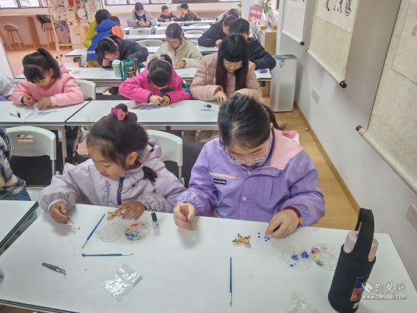 非遺胸針DIY環(huán)節(jié),“閱讀媽媽”一對一指導(dǎo)大家如何將黃鶴樓元素、荊楚紋樣融入指尖創(chuàng)作。一枚枚精美的胸針逐漸成型,文化記憶也被定格于方寸之間。當(dāng)孩子們將親手制作的胸針佩戴于胸前時,臉上洋溢著滿滿的成就感與自豪感。