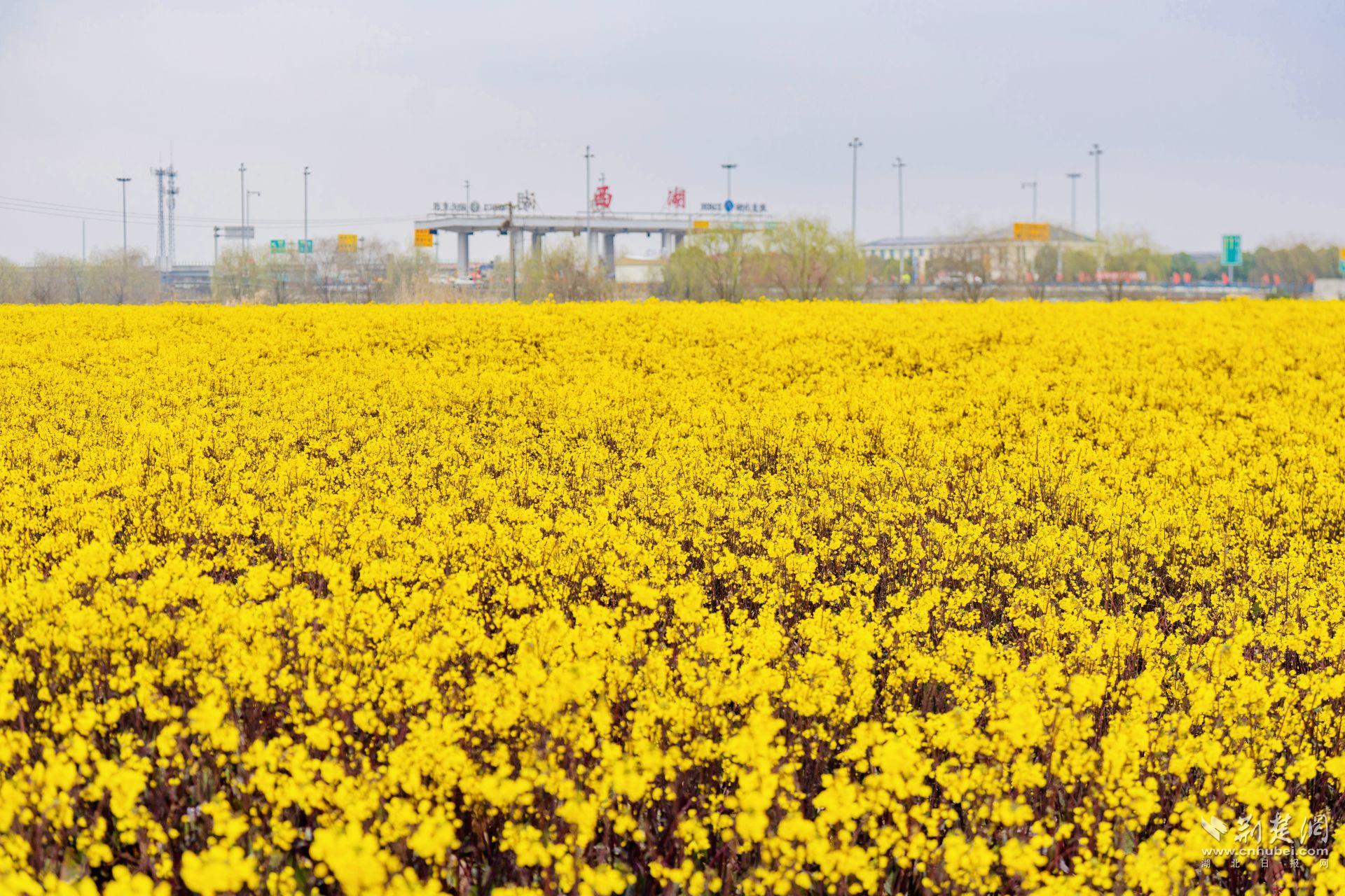 荊楚網(wǎng)(湖北日?qǐng)?bào)網(wǎng))訊(記者 何婧 通訊員 汪玉平 徐卉婷 李玲)“這里的油菜花太壯觀了,一眼望過去全是金燦燦的,就像鋪了一張大地毯!”3月10日上午,駕車經(jīng)過東西湖區(qū)西湖收費(fèi)站的王女士,被眼前這片突如其來的金色花海深深震撼。她忍不住停下車,和閨蜜一起沖進(jìn)花田,留下這個(gè)春天最美的瞬間。