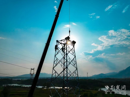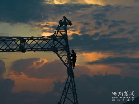 荊楚網(wǎng)(湖北日?qǐng)?bào)網(wǎng))訊(通訊員曹祥魁 袁勝)8月23日下午5點(diǎn),黃石陽(yáng)新縣陶港鎮(zhèn)祠堂畈附近,40多米高鐵塔上4名電力工人渾身濕透,他們扶著頭頂上吊車吊過來(lái)的鐵部件,開始了最后“一吊”的組塔工作。