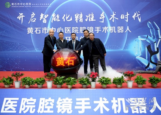 上午,黃石市中心醫(yī)院腔鏡手術(shù)機(jī)器人開機(jī)儀式在黃金山院區(qū)舉行,黃石市衛(wèi)生健康委主任嚴(yán)定方,中華醫(yī)學(xué)會泌尿外科分會常委、武漢市醫(yī)學(xué)會機(jī)器人與腔鏡外科分會主委、武漢同濟(jì)醫(yī)院泌尿外科主任王少剛教授,黃石市中心醫(yī)院院長袁明,黃石市中心醫(yī)院外科主任夏國兵等與會嘉賓和專家共同按下“手術(shù)機(jī)器人技術(shù)開啟智能化精準(zhǔn)手術(shù)時(shí)代”的啟動球,開啟了黃石地區(qū)微創(chuàng)手術(shù)邁入機(jī)器人的新時(shí)代。開機(jī)儀式上,黃石市中心醫(yī)院黃金山院區(qū)還被授牌為“手術(shù)機(jī)器人培訓(xùn)基地”。