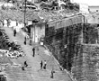 舊城廢墟走向新縣城           全景宋代水井         水位線下的房屋被拆除