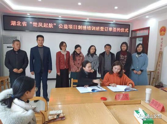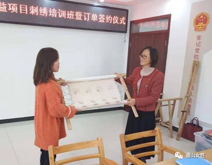 2019年12月11日,通山“繡娘”獲得首批訂單,踏上將“指尖技能”轉(zhuǎn)化為“指尖財(cái)富”的第一步,也是通山縣“巧山姑”手工技能培訓(xùn)項(xiàng)目初步成效的體現(xiàn)。訂單設(shè)定老鼠生肖肚兜、高山流水書簽、小夜燈繡片等12種樣式,共含繡刺任務(wù)500余件。繡娘收到訂單消息后,各個(gè)歡欣鼓舞,喜笑顏開,不少繡娘們互相鼓勁打氣,摩拳擦掌準(zhǔn)備大干一場(chǎng)?;貞?yīng)繡娘們的殷切期盼,訂單簽訂儀式于當(dāng)天下午在通山縣南林橋鎮(zhèn)石門村舉行,咸寧市婦聯(lián)主席陳海蓮、副主席張繼萍、通山縣副縣長(zhǎng)張曉丹參加活動(dòng),縣婦聯(lián)主席張丹主持。