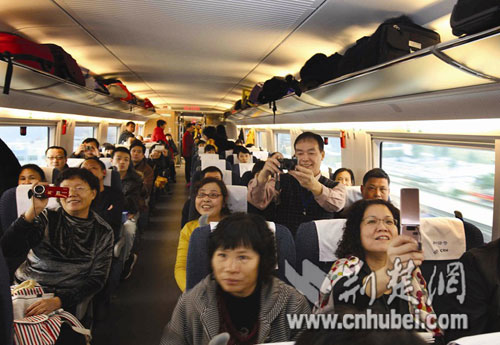 荊楚網(wǎng)消息 (楚天金報記者譚新杰 通訊員郭金富、劉強)12月26日上午9時,三列嶄新的時速350公里“和諧號”高速列車從武漢站、長沙站和廣州北站同時首發(fā),標志著目前世界上運營速度最快、一次性建成里程最長的高鐵新干線——武廣客專正式投入運營。“陸地飛行下廣州,千里南國一日還”的時代已經(jīng)到來。